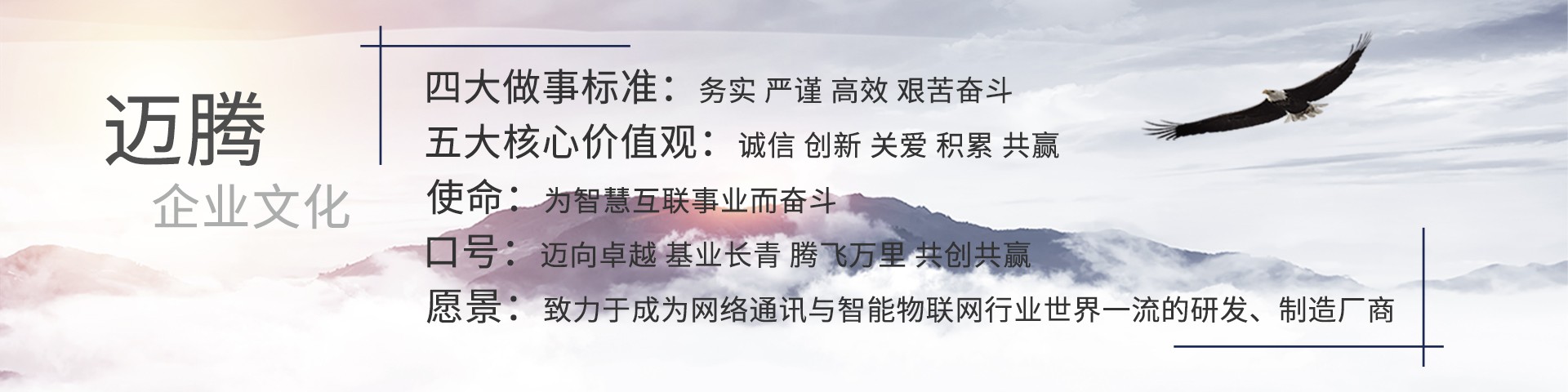 深圳市邁騰電子有限公司(簡(jiǎn)稱邁騰),成立于2008年2月,是一家專注于網(wǎng)絡(luò)通訊與物聯(lián)網(wǎng)產(chǎn)品開發(fā)、生產(chǎn)、銷售及服務(wù)為一體的國(guó)家級(jí)高科技企業(yè)。目前是國(guó)、內(nèi)外網(wǎng)絡(luò)通訊與物聯(lián)網(wǎng)行業(yè)前列的研發(fā)、制造廠商。